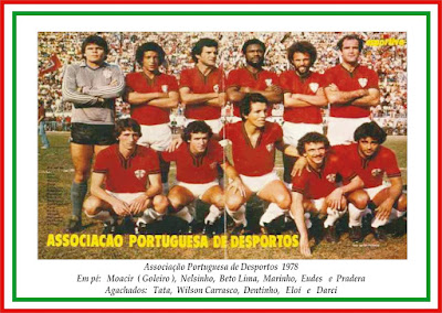 PORTUGUESA 1976 Fritzen,Badeco, Isidoro, Wilsin,Mendes, Calegari,Tatá, Santos, Dicá.Adilton,Rui Rei, Galli, Serelepe, Dárcio,Xa, Américo,Cardoso, Carlos, Esquerdin e Enéas. Ado, Miguel,Capelo
