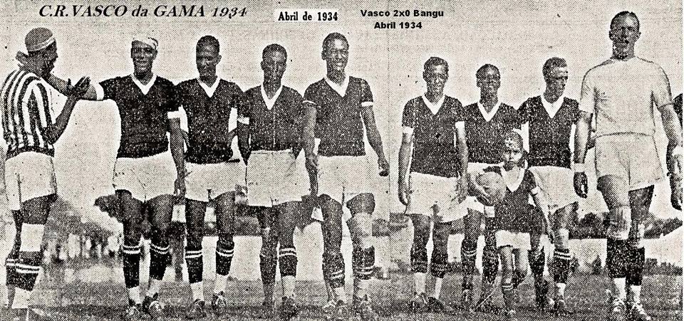 VASCO DA GAMA 1934 Domingos da Guia de gorro Rei e Russinho comandam a entrada do time em campo em São Januário